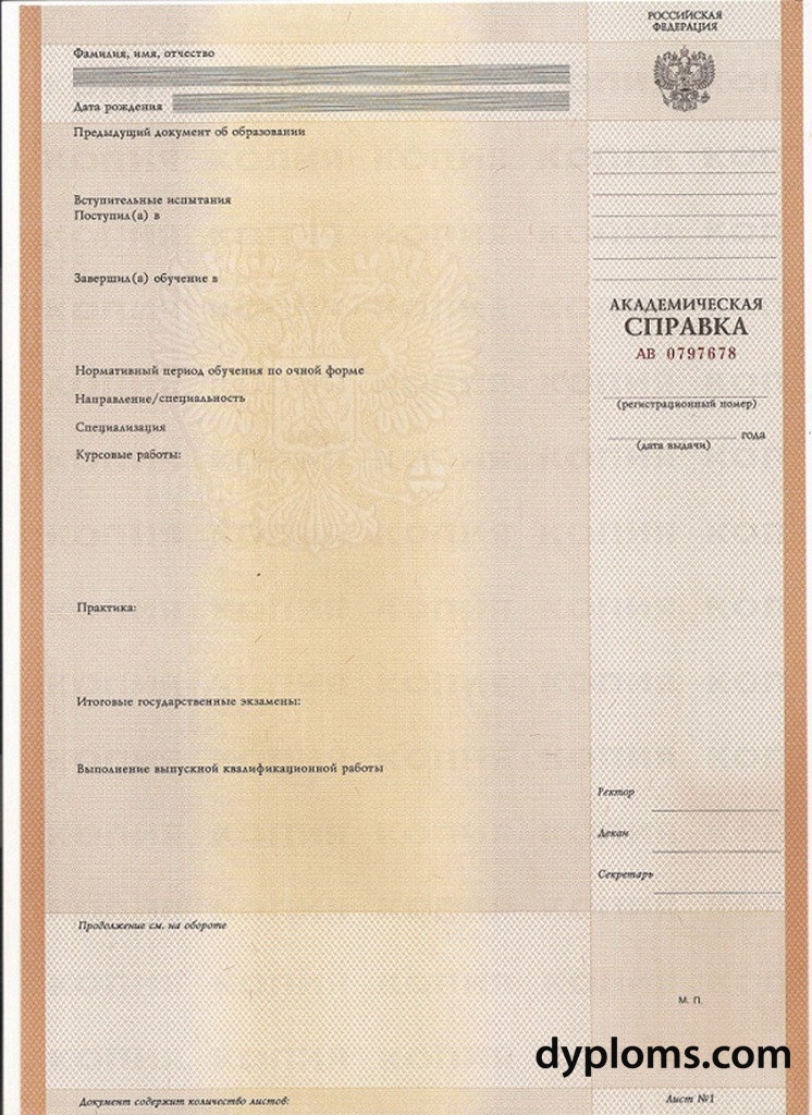 Наша организация профессионально занимается созданием подлинных документов на государственных бланках, полностью соответствующих действующим нормативам. Купить академическую справку о незаконченном высшем образовании — означает получить легитимный документ, подтверждающий факт обучения в любом столичном или региональном ВУЗе.