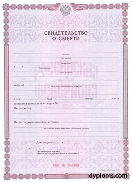 Обращайтесь к нам! На нашем сайте вы можете быстро купить свидетельство о смерти с реестром, оформив онлайн-заявку и при необходимости получив консультацию от наших экспертов. Документ изготавливается на качественной бумаге, с подписями и печатями, соответствующими установленным нормам.